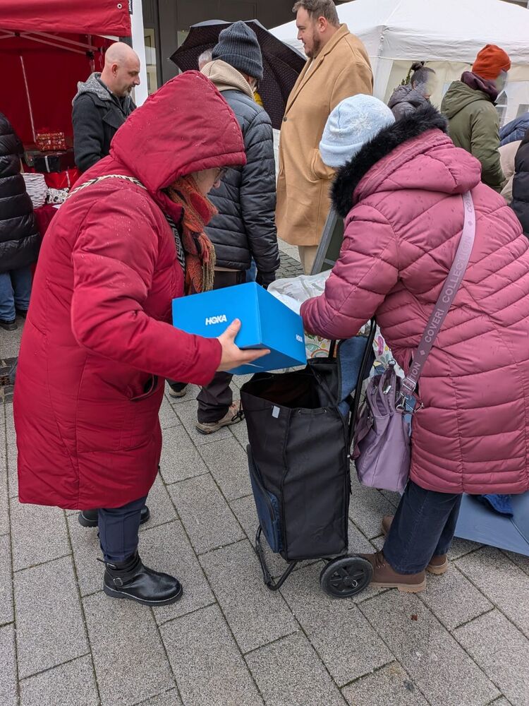 Auch wenn das Wetter besser hätte sein können, kamen heute schon viele, um Weihnachtspäckchen abzugeben, oder Kartons zum Befüllen entgegenzunehmen.